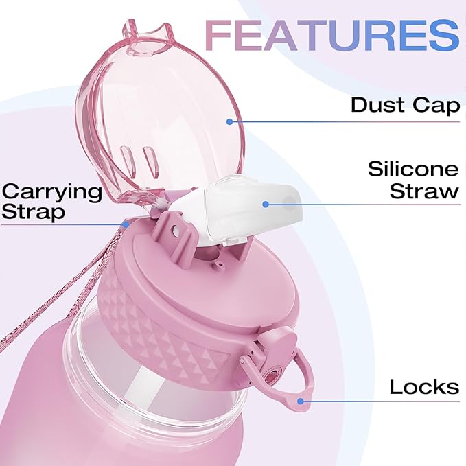 - 【Durable & BPA Free】: Constructed from highly durable, BPA-free, and non-toxic plastic, this water bottle is resistant to drops and avoids easy damage.