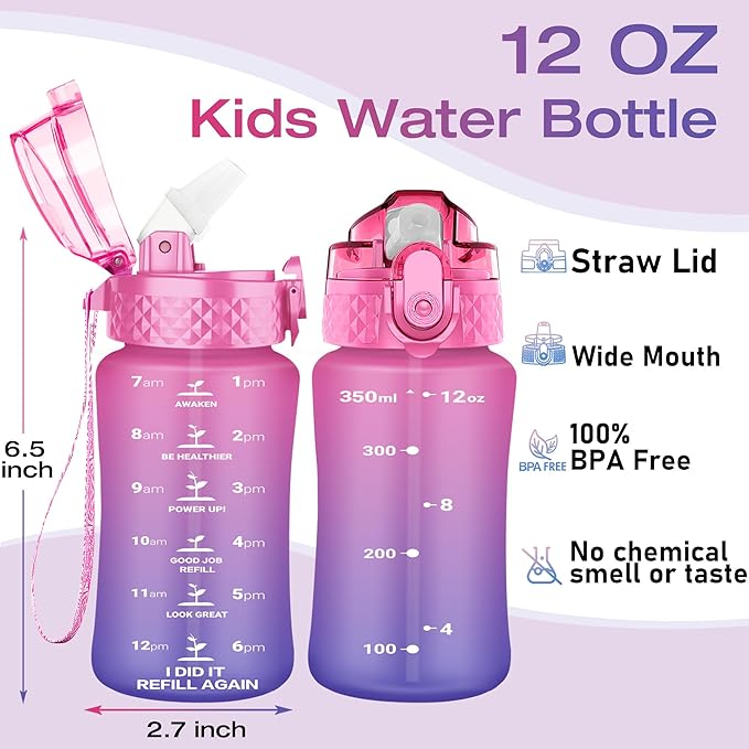 - 【Best for Kids】: Specifically designed for young children to promote hydration throughout the day. The flip-top lid incorporates a safety lock to prevent dust and leaks and can be effortlessly