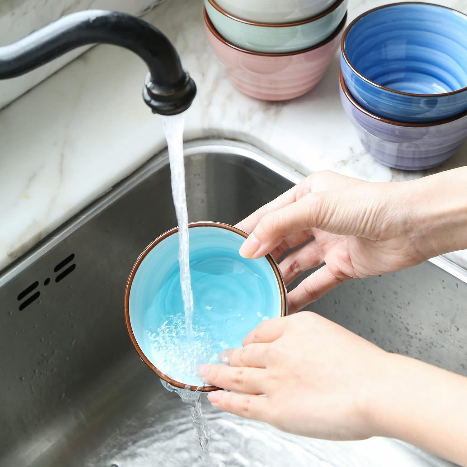 - SWIRL PATTERNS & BLACK SPOTS DESIGN - The exquisite hand-painted gradient patterns paired with black spots bring you a stylish and concise feeling. Dress up your meals and snacks with these unique, colorful bowls. They will brighten up your table at mealtime and add a touch of brilliant color to life.