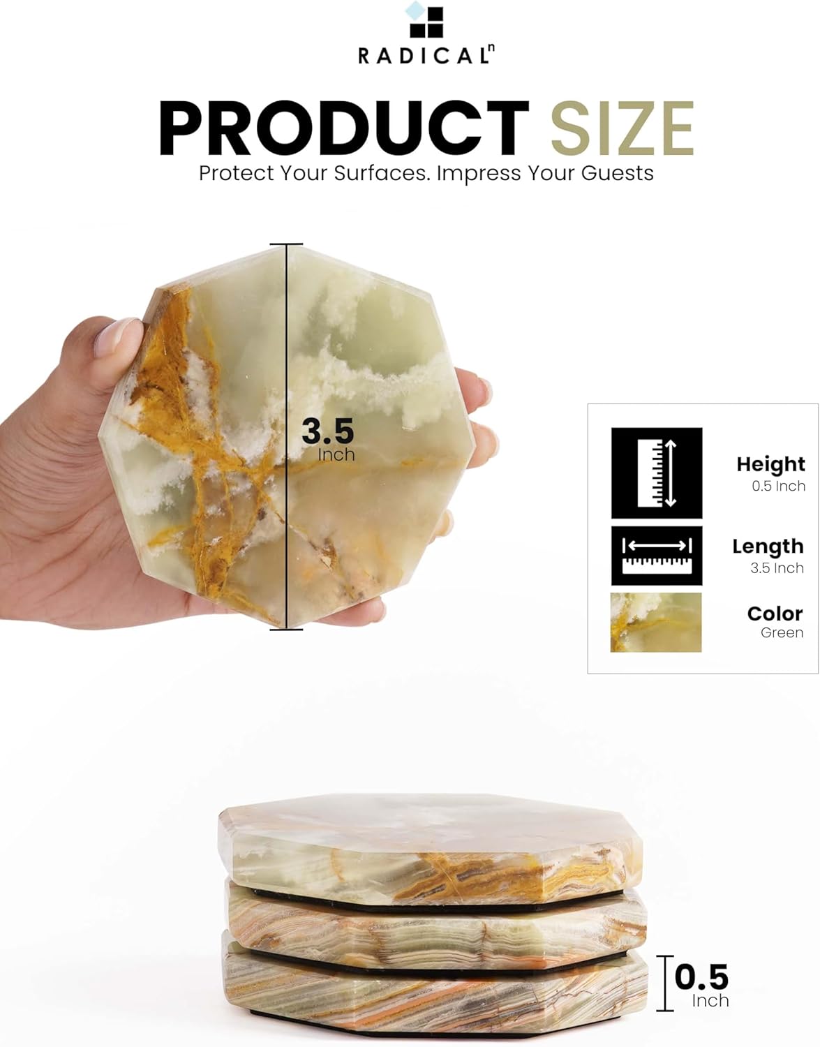 Radicaln Marble Coasters Star 3.5" Inches Green Onyx Handmade Marble Drink Coasters for Home and Kitchen, Drink Coaster Set of 6, Ideal Coaster for Drink