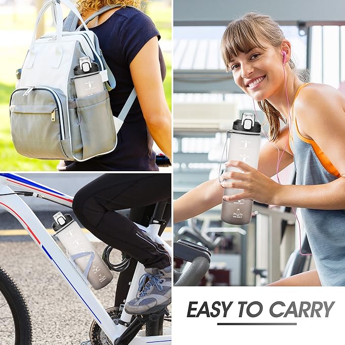 - Time Marker & Motivational quotes - 32oz motivational water bottle with times to drink and inspirational quotes, it's great for measuring your daily water intake, ensuring you stay hydrated, and motivating you to drink more. Our water bottles will make you better achieve fitness goals, including weight loss, appetite control, and overall health.