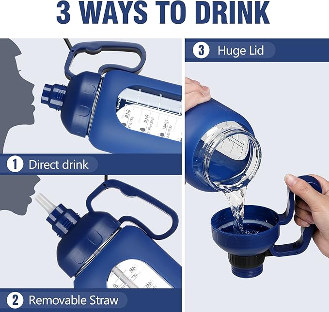 - MULTI FUNCTION-Portable large water bottle perfect for traveling, camping, running, biking and outdoor activities. Big water bottle with Silicone Sleeve comes with multiple vibrant colors,making it an ideal Mother's Day gift or any holiday. To help your family, friends drink more water, stay healthy.