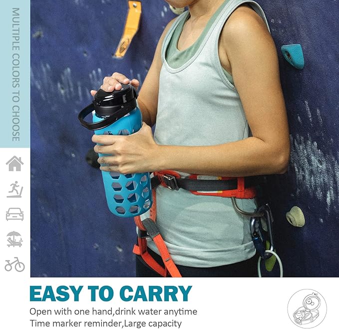 - MULTI FUNCTION:Portable large water bottle perfect for traveling, camping, running, biking and outdoor activities. Big water bottle with Silicone Sleeve comes with multiple vibrant colors,making it an ideal Mother's Day gift or any holiday.