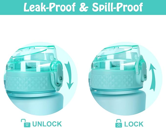 - LEAK-PROOF & DUSTPROOF: it is totally leak-proof so long as you have the tab in the locked position. So it won't accidentally open and leak while in backpack. Lid cover also keeps bite valve clean