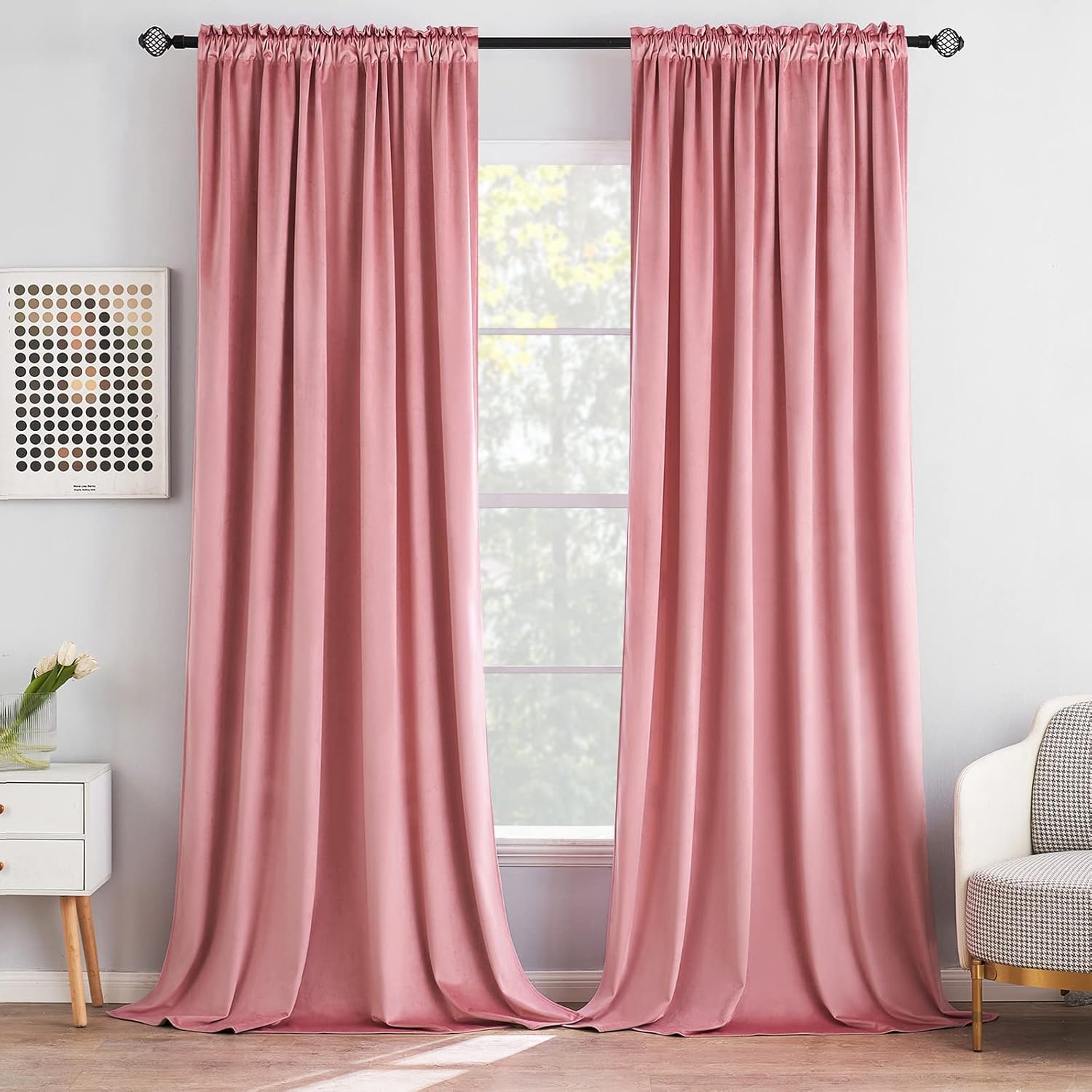 MIULEE Blush Pink Velvet Curtains Thermal Insulated Blackout Curtain Drapes for Bedroom Living Room Darkening 90 Inches Long Curtains Panels Rod Pocket Set of 2