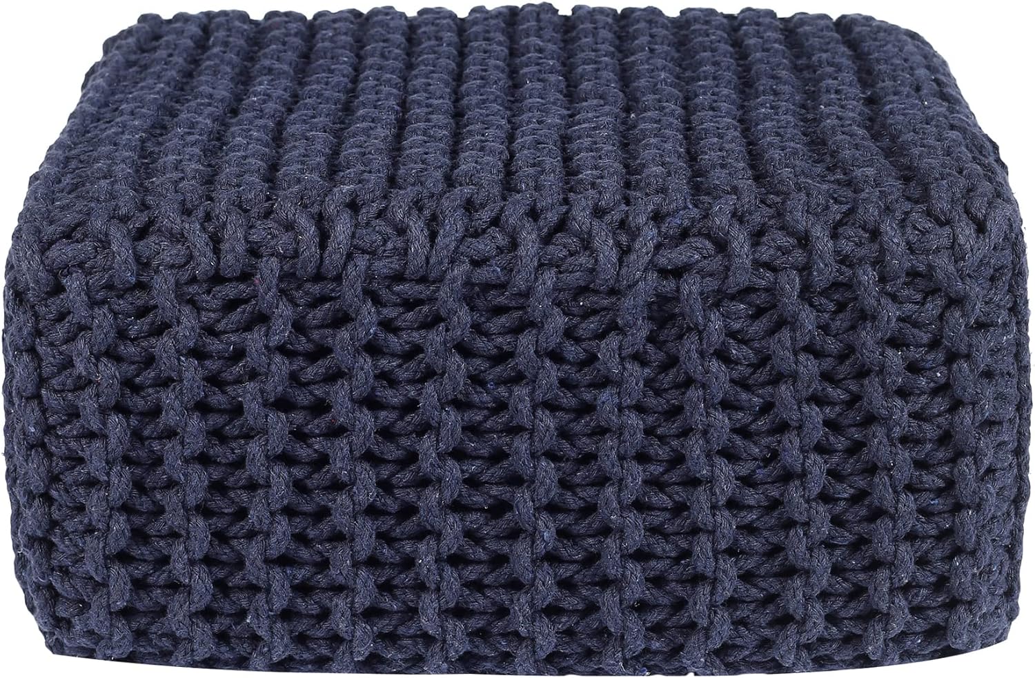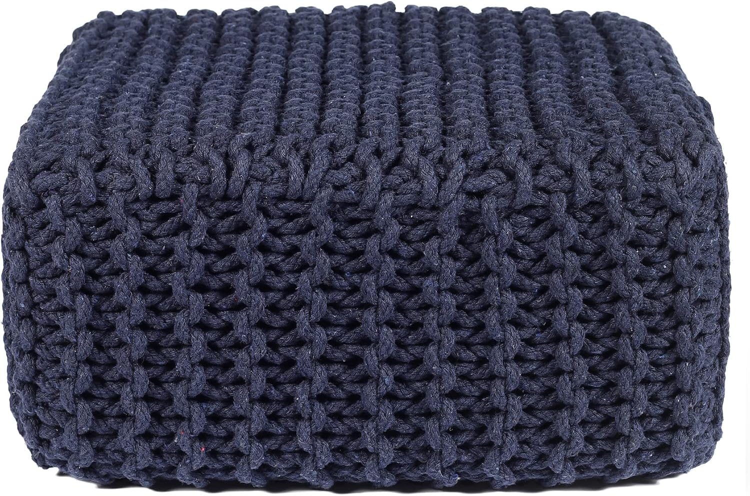 REDEARTH · Cube Low Pouf Foot Stool Ottoman - Hand Knitted Poof - Cord Boho Pouffe - Home Décor - Stuffed Footrest for Living Room - Nursery - Bedroom - Patio (16" x 16" x 8") - Navy Blue