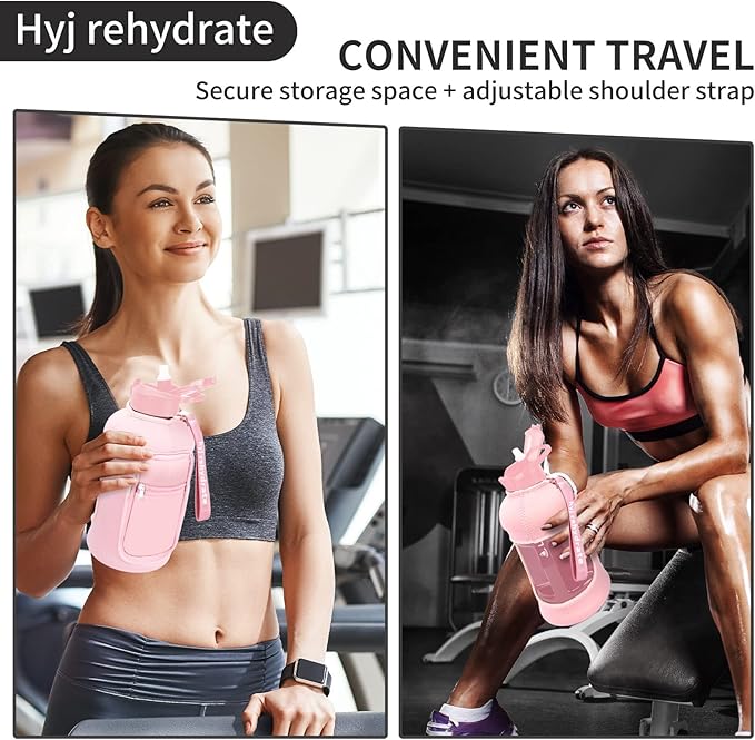 2.2L Half Gallon Water Bottle with Storage Sleeve and Covered Straw Lid -BPA Free Reusable Large Water Jug with Handle-Big Sports Water Bottle 2.2 Liter (74 Ounce),pink