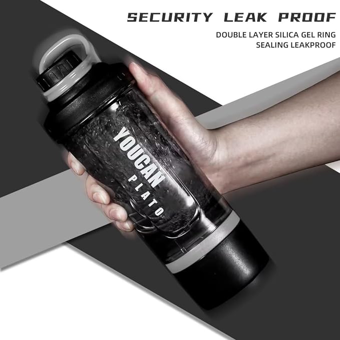 - 👉𝐒𝐡𝐚𝐤𝐞𝐫 𝐁𝐨𝐭𝐭𝐥𝐞 𝐰𝐢𝐭𝐡 𝐏𝐫𝐨𝐭𝐞𝐢𝐧 𝐏𝐨𝐰𝐝𝐞𝐫 𝐒𝐭𝐨𝐫𝐚𝐠𝐞 𝐂𝐨𝐦𝐩𝐚𝐫𝐭𝐦𝐞𝐧𝐭:Want to easily supplement your protein intake anytime, anywhere? This shaker bottle is your best choice! Not only is it convenient to carry, but it also comes with a protein powder storage compartment, allowing you to add protein powder to your drink anytime, anywhere, and meet your nutritional needs.