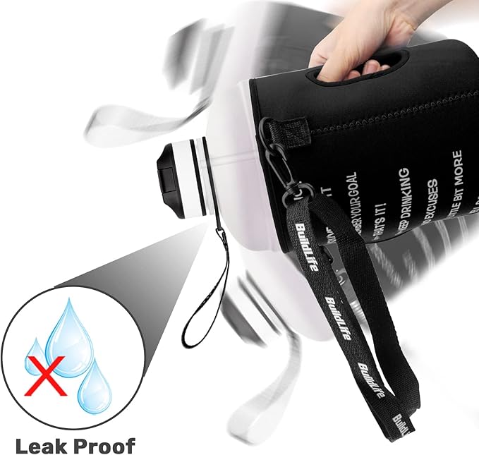 - 【 MOTIVATIONAL TIME MARKER】With unique inspirational quote and time marker, QuiFit one gallon water bottle with straw is great for measuring your daily intake of water, reminding you stay hydrated and drink enough water throughout the day. 1 gallon water jug with time marker is a must have for the gym, sports, yoga, hiking, camping, & traveling.