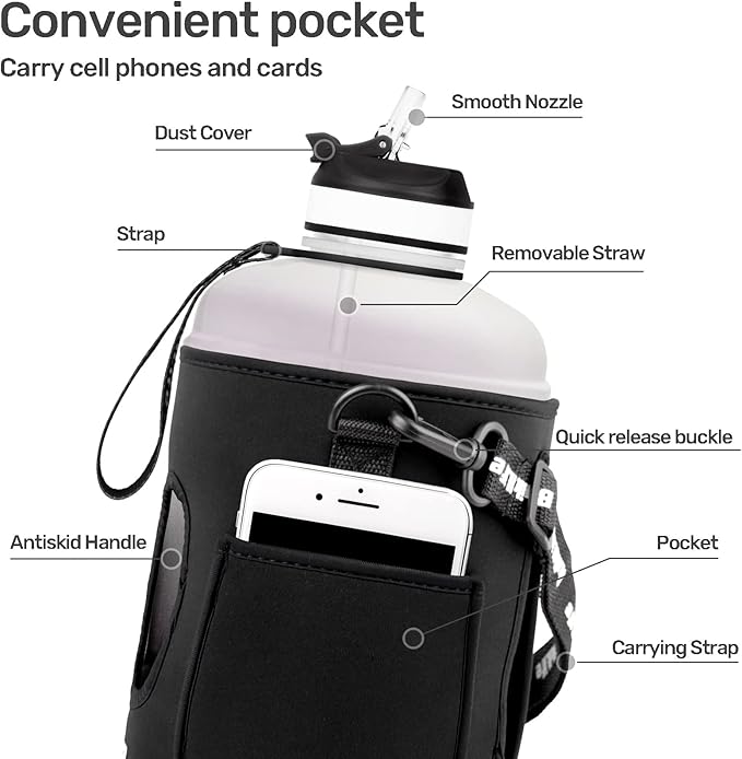 - 【 FRIENDLY DESIGN】Giant water bottle gallon with wide-mouth opening is easy to fill with ice cubes and clean. Mouthpiece with straw making drinking easier,and dust cover help drinking health. QuiFit 1 gallon water bottle with straw is a sport water bottle with measurements designed especially for athletes, runners, cycling & fitness enthusiasts, outdoors lovers and anyone else who needs to stay hydrated while staying active.