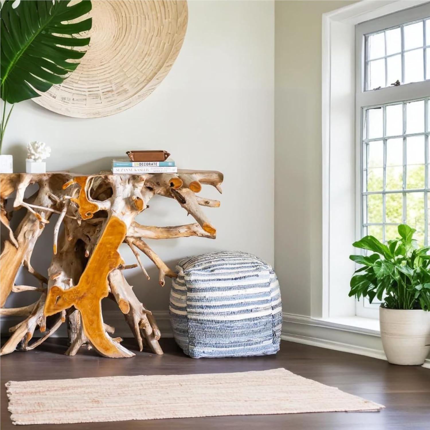 Mark&Day Pouf Ottoman, Korneuburg Natural Fiber Navy Cube Pouf Foot Rest for Living Room, Bedroom and Boho Home Decor (16"x16"x16")