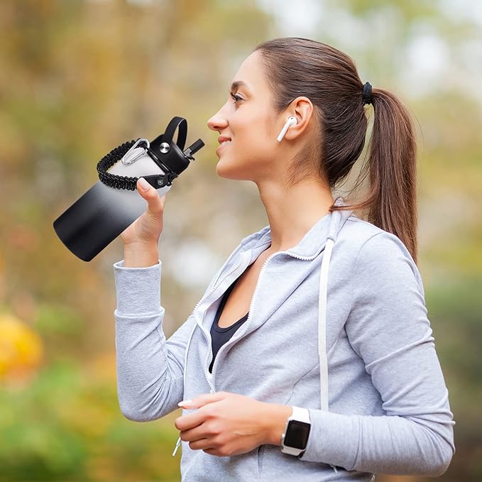 - PERSONALIZATION BOTTLE PARACORD HANDLE - Quarter gallon water bottle with a pretty cool functional paracord handle which does more than meets the eye.?The survival strap cord is made of military-grade nylon and comes with a compass, safety loop, metal carabiner, flint, igniter, and whistle, making it a functional and stylish addition to your thermo water flask, is perfect for outdoor camping, hiking, fitness enthusiasts