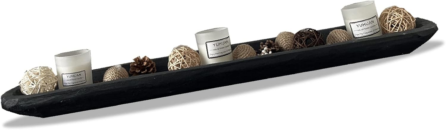 Wooden Dough Bowl Decor, Vintage Wooden Bowl Hand Carved Home Decor for Dining Table Center, Living Room, Kitchen Decor. (30inch black)