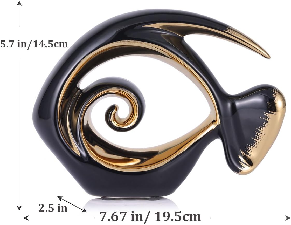 - High-Quality Ceramic Construction: Made with premium ceramic materials and expert craftsmanship, this black gold ceramic fish sculpture features an elegant lustrous finish, a smooth texture, and is easy to clean and maintain.
