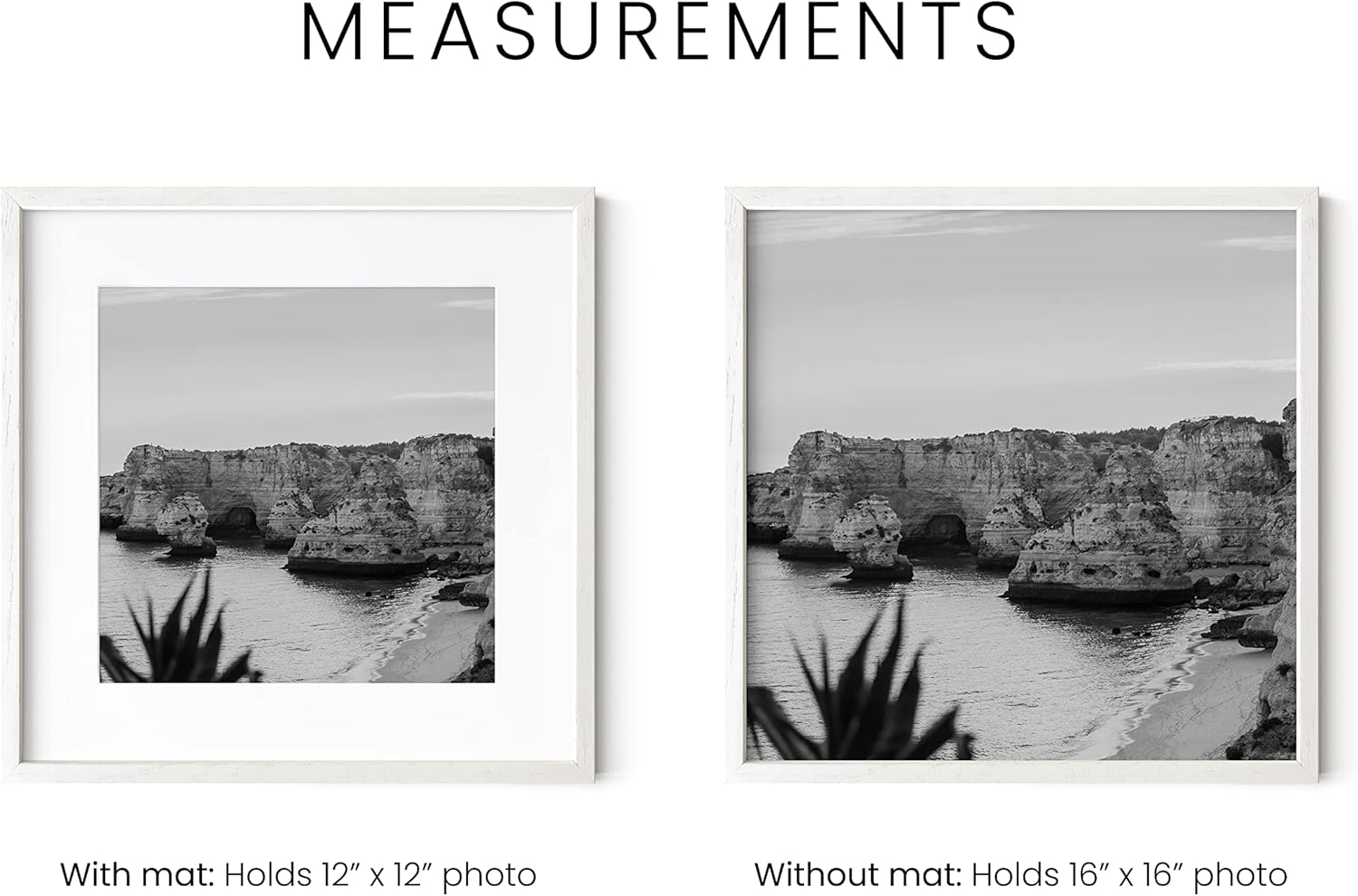 - WALL FRAMES COLLAGE SET: Indulge in the beauty of these 16x16 frames, meticulously crafted from premium oak wood and enveloped in a pure white frame and mat. This wooden frames wall gallery frame set offers a stunning canvas to display memories