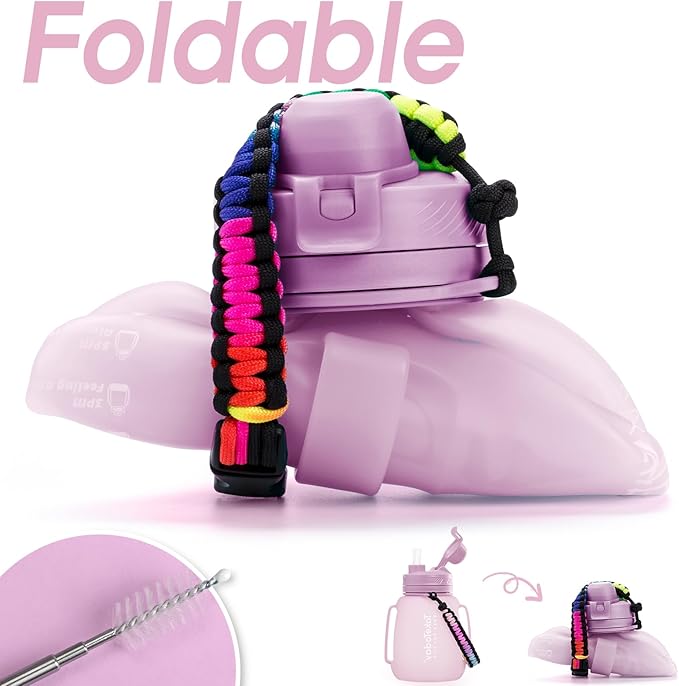 - Foldable bottle can save more space: Our 40 OZ gallon water bottles can be folded to save up to 68.5% space. The folding-up water bottle can be easily packed in your bags or packages and convenient to take with everywhere you go. The giant jug water bottle is rolled up and fixed with a braided paracord bottle handle,portable accessory for you on the go. Quite easy to carry and hang up with the water bottle handle.