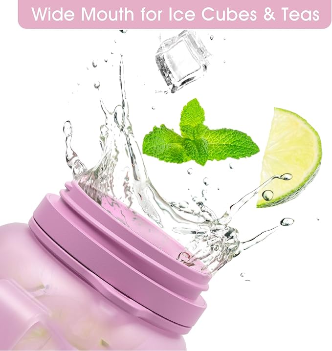 - Wide-mouth water bottle, free to add ice cubes and make fruit teas: The bottle 65mm diameter wide-open mouth makes it easy to clean. Not as other plastic gallon water jug, this hydrated water bottle can be wristed and rubbed to remove sendimentary factors on the bottle wall. The water tracker bottle body can contain water temperature between -40 degree to 200 degree, you can add ice cubes and other tea supplements.