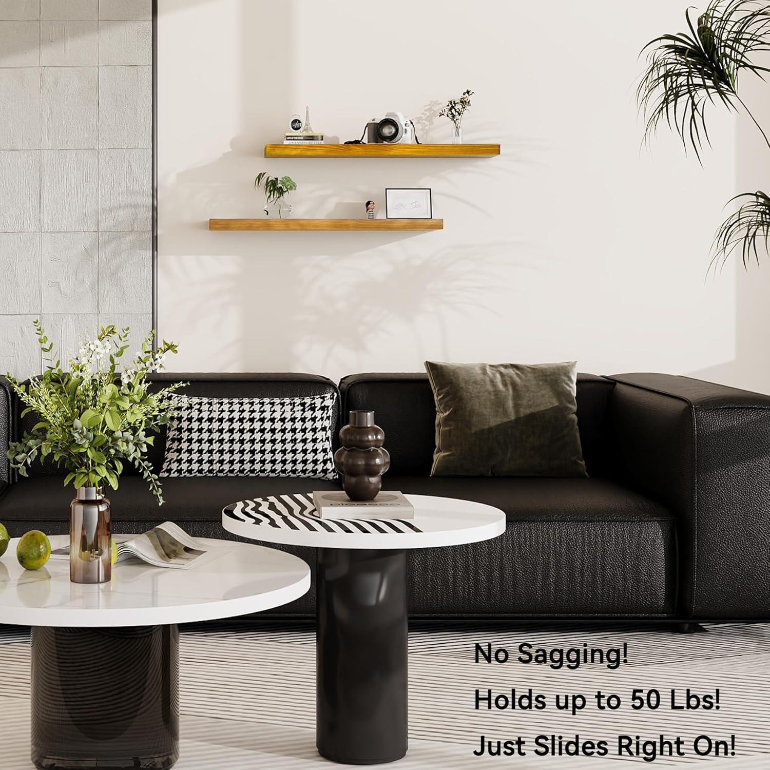 - MODERN RUSTIC LOOK - The floating shelves are made of natural pine, and the wood has different nodes and grains, so the color of each shelf may be slightly different, but equally stunning!