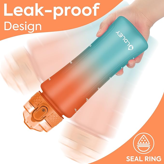 OLDLEY Kids Water Bottle with Straw 15 oz Motivational Water Bottles with Time Marker for School Travel, Spill Proof Sports Water Bottle for Girls Boys,1 Straw Lid,Orange/Green