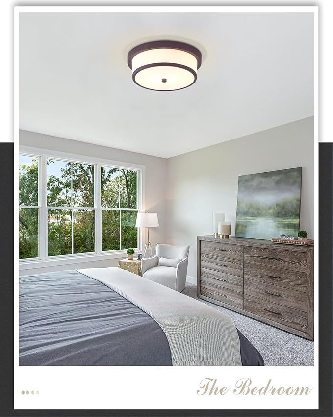 - 【MODERN DESIGN】This light fixtures ceiling mount is made of high-quality metal frame and frosted glass, which is durable and non-glare. Simple shape and oil rubbed bronze finish design, can perfectly match any decoration. The semi flush mount ceiling light not only provides you with lighting, but also enhances your sense of life atmosphere.