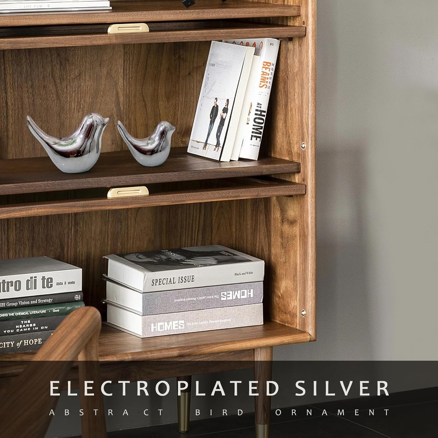 Notakia Small Birds Statues Home Decor Modern Style Decorative Ornaments for Living Room, Bedroom, Office Desktop, Cabinets (2Pcs Silver Birds)