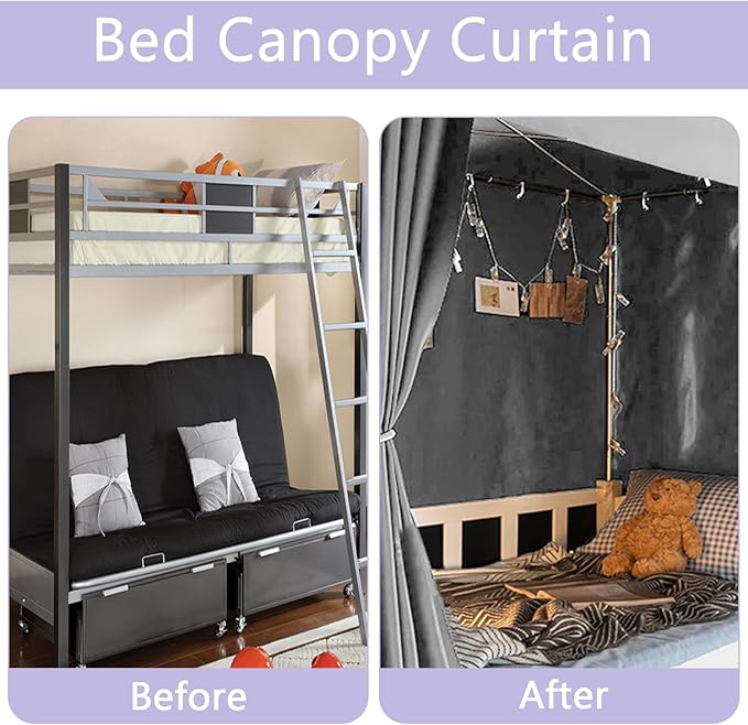 - 【Lightproof Canopy Curtains】80% lightproof shading effect of canopy curtains. Not too thick to increase fabric breathability. Grey full bed canopy blocks out the strong light, protects you from bright lights and help you get quality sleep.