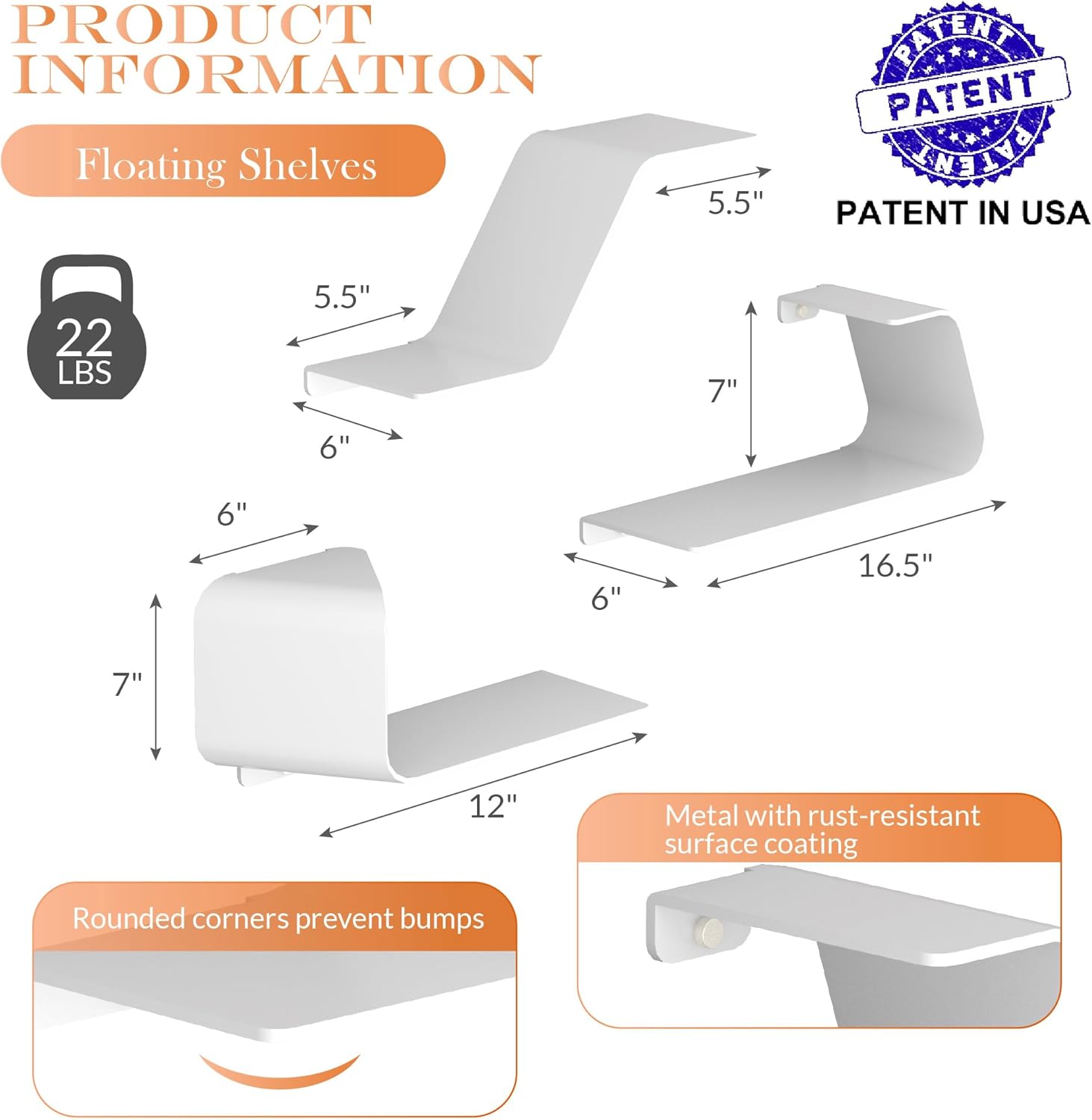 - High Quality Metal Materials Easy to Clean: The floating shelf from premium metal, it is not only easy to clean but remarkably durable. Its surface features an anti-rust coating for excellent oxidation resistance. The robust metal construction ensures it can bear significant weight without deformation. Just wipe gently with a rag, you can make it restore the original luster.