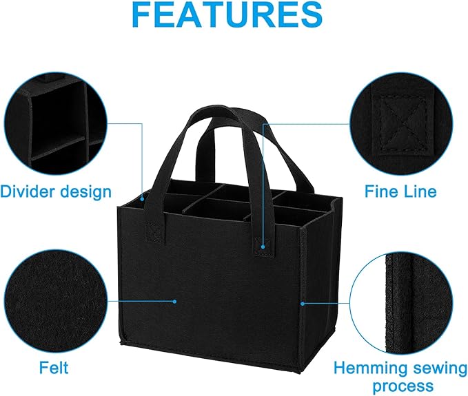 - Color: Black; Material: Felt; Size: 240 x 180 x 160mm / 9.4 x 7.1 x 6.3 inch(L*W*H); Packing List: 2 x Wine Carrier Tote