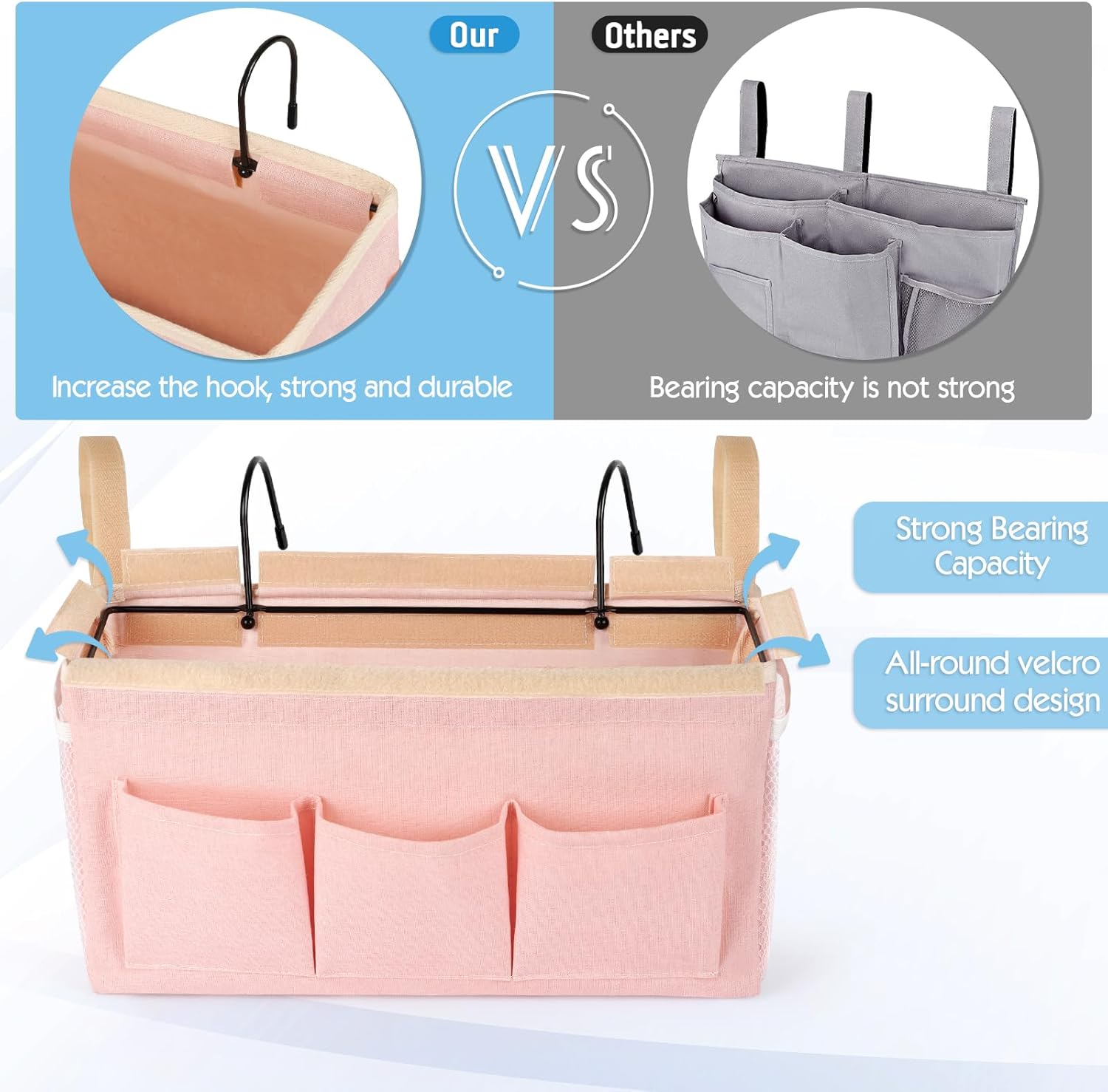 - 【Strong Bearing Capacity】In addition to the metal hook, the bedside organizer also added adjustable straps on both sides to help the bedside caddy to be additionally fixed in place, bottom cardboard added to hold basket shape, enduring enough to bear heavy weight and prevent sagging.