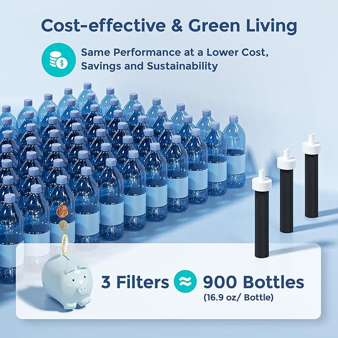 - Cost-effective: Same performance as the original filter but at a lower cost. Save up to 900 single-use 16.9 ounce plastic bottles