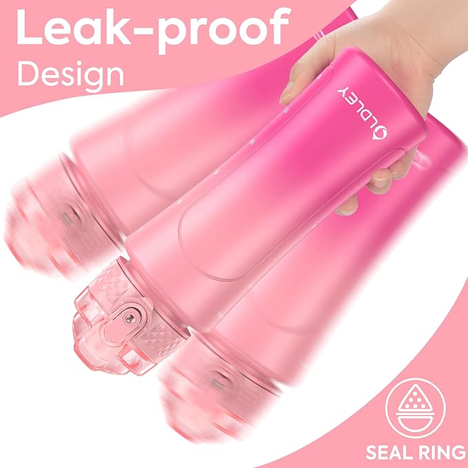 OLDLEY Kids Water Bottle with Straw 15 oz BPA-Free Leak-Proof Motivational Water Bottles with Time Marker for School Sports Travel Gym, Easy to Use for Girls Goys, 1 Straw Lid, Pink Purple