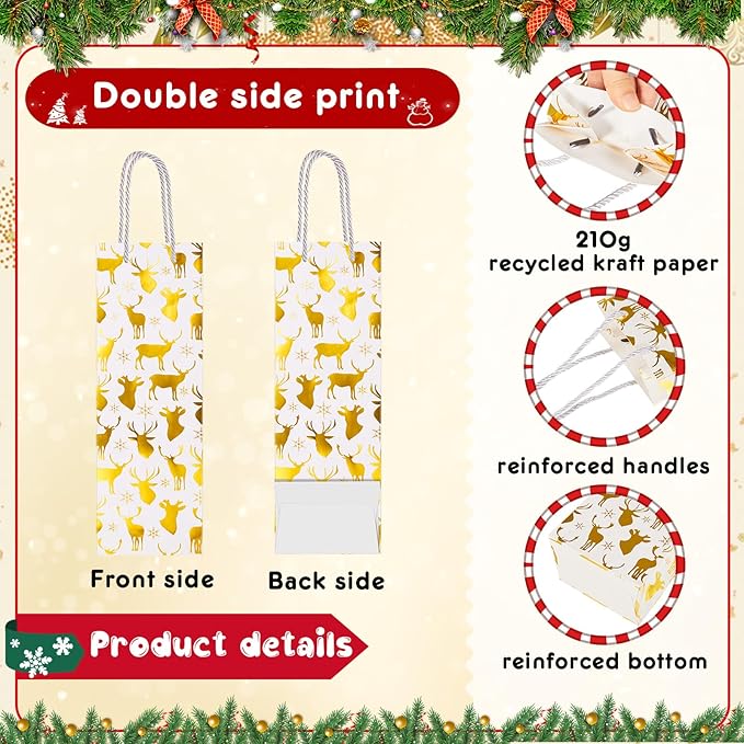 - Christmas Wine Bag Design: Christmas kraft paper flash wine gift bags with Christmas elements design, delicate design red wine bag will shine in the light; The Christmas wine bag contains Christmas patterns in line with the Christmas theme, which can add Christmas atmosphere to your home or party