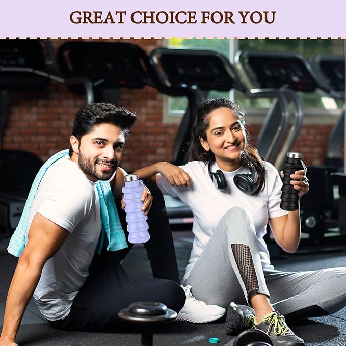 - Colors and Quantity: this package comes with 2 collapsible water bottles in appealing black and purple colors; The distinct color options make these reusable water bottles suitable for most age groups; This item combines functionality and aesthetics, making it a nice travel or everyday accessory