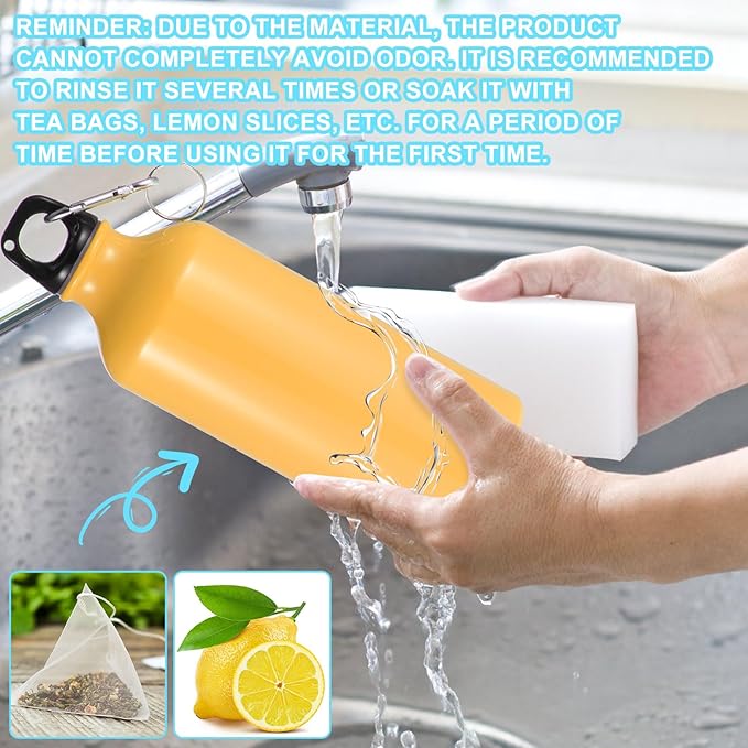 - Warm Tip: because of the material, the aluminum camping water bottle will have a slight taste, which is a normal phenomenon; Therefore, when using the bottle for the first time, it is recommended to repeatedly clean it several times, or soak the tea in the cup, so as to effectively remove the smell