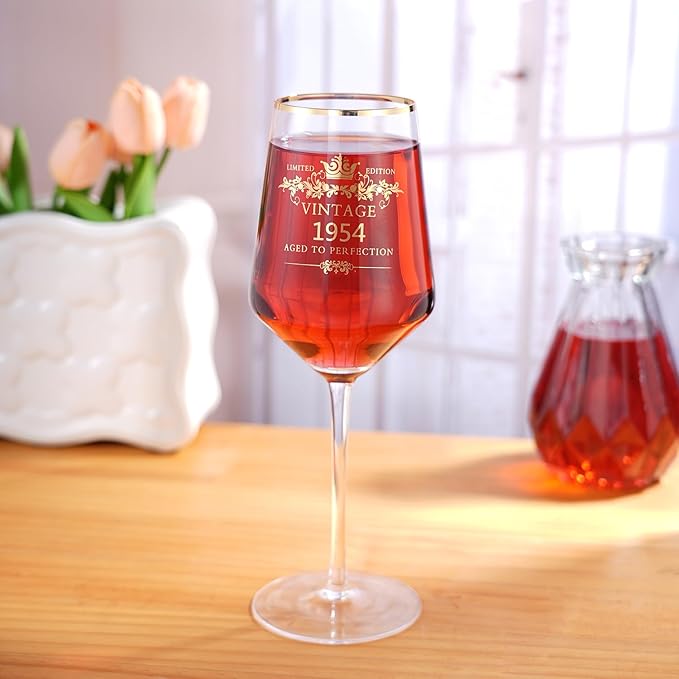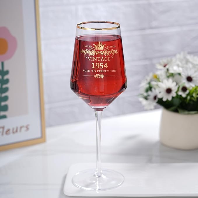 - This unique wine glass is elegant and refined, just like you, and will make any birthday, celebration, reunion, Mother’s Day, or Father’s Day more special. Clear and legible printing “ VINTAGE 1954” on the glass is ready to celebrate her 70th birthday or anniversary