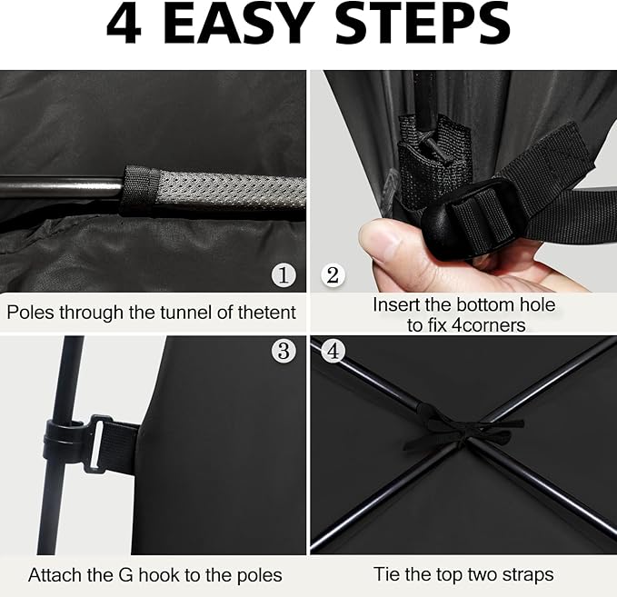 - Easy to Set Up: 2 fiberglass poles through the tunnel of the tent, insert the bottom hole to fix 4 corners, super easy to set up in a minute. Size is 75"x54"x53" H, please measure your bed size before purchasing the bed tent.