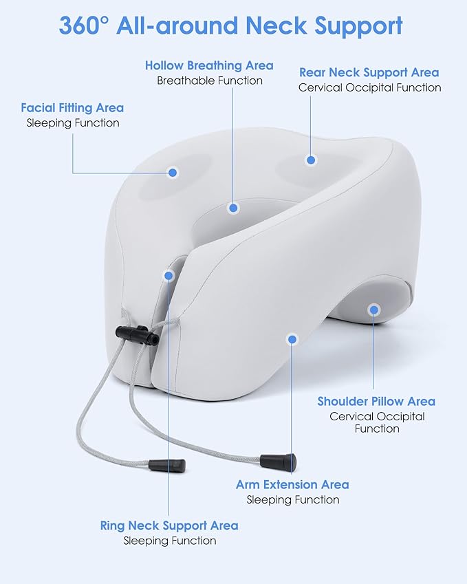 - 【2 in 1 Travel Pillow】As U-Shape Pillow, our travel pillow offers 360° all-around neck support and helps you keep your neck and head upright to alleviate pressure and without getting any soreness during travel. As Napping Pillow, the airplane neck pillow is designed with a perfect 45° angle, allowing your head and neck to naturally lean forward. This sleeping pillow decreases the pressure of your cervical vertebra.