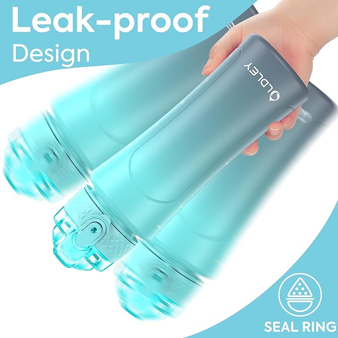 OLDLEY Kids Water Bottle with Straw 15 oz BPA-Free Leak-Proof Motivational Water Bottles with Time Marker for School Sports Travel Gym, Easy to Use for Girls Goys, 1 Straw Lid, Blue Grey