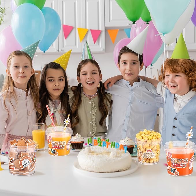 20 Pcs 32 oz Ice Cream Buckets with Lids and Handles Clear Cocktail Rum Buckets Reusable Food Containers with 100 Pcs Boho Stickers 24 Pcs Boho Flower Straws for Party Supplies