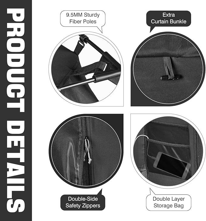 - RECTANGULAR PATENTED DESIGN: BORNA bed tent is designed with unique inserted poles, compared to pop-up tents on the market, we use 9.5mm fiber poles to create this through pole blackout tent, which won't collapse or bend, making it more stable and durable. The rectangular frame structure is also very spacious, making it an ideal choice for you.