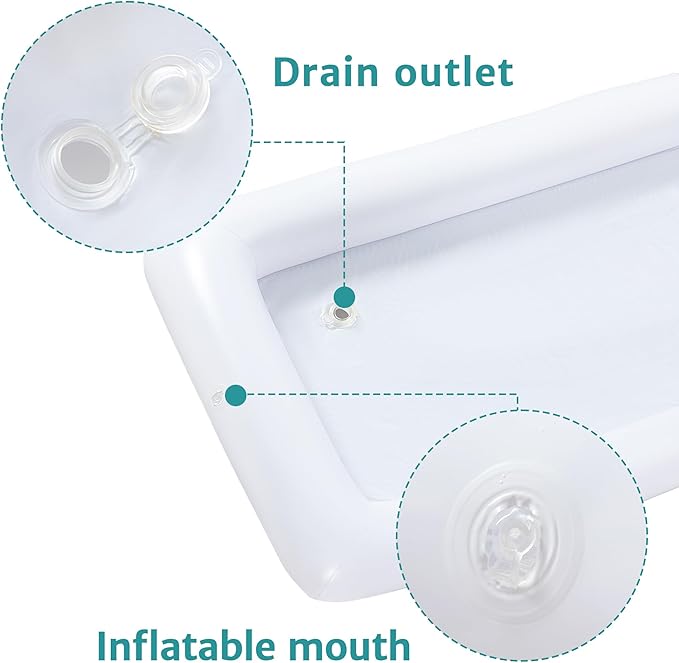 - LARGE SIZE: Inflates to 49.6*23.8*4.72”. It weights less than one pound and it is roomy enough to hold multiple bowls, dishes, drinks, and cans. The inflatable salad bar lets the food stay cold for hours, (indoors or outdoors) and have enough space to serve a large number of people and provide services.