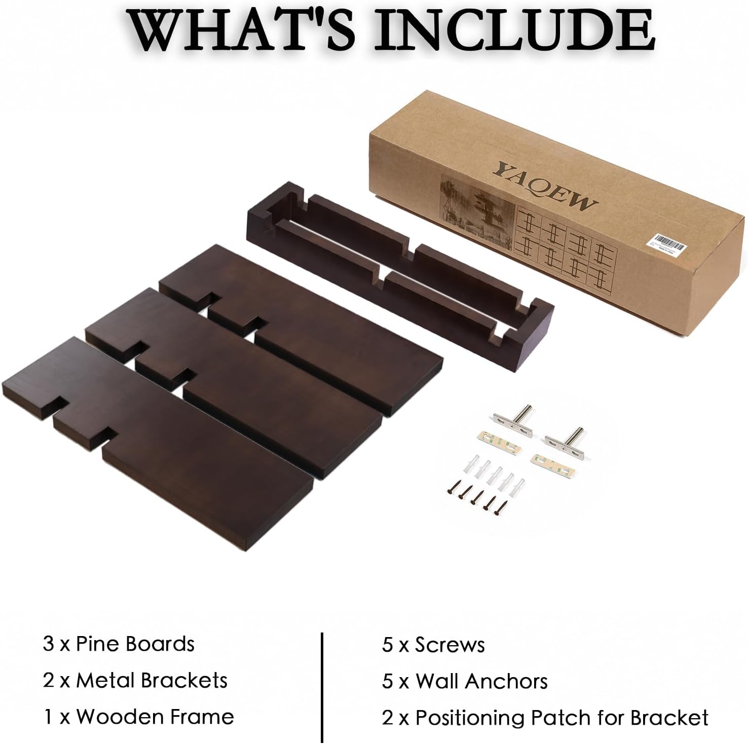 - Sturdy and Long-Lasting: Crafted from solid pine wood with a dark walnut stain, our wall-mounted shelves feature invisible metal brackets for a secure fit. The double mortise and tenon design enhances stability, preventing any wobbling