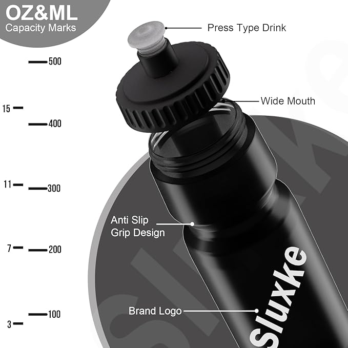 - 🚴Excellent Material: The SLUXKE cycling water bottle uses food-grade PP5 resin material, which is a high-quality material that is anti-erosion and oil-resistant. 100% BPA-free, non-toxic, and odorless for safe drinking. the 720ml capacity water bottle is thick, durable, and reusable, A perfect squeeze water bottle for bike cages.
