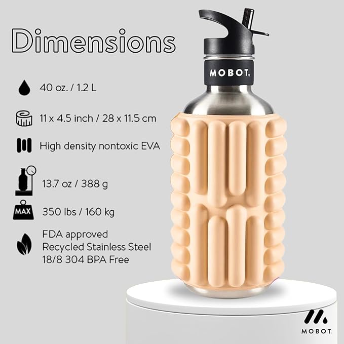 - GYM BOTTLE: Whether you're a seasoned athlete or just starting your fitness journey, our Mobot foam roller water bottle is your ultimate companion, offering hydration, muscle relief, and convenience in one.