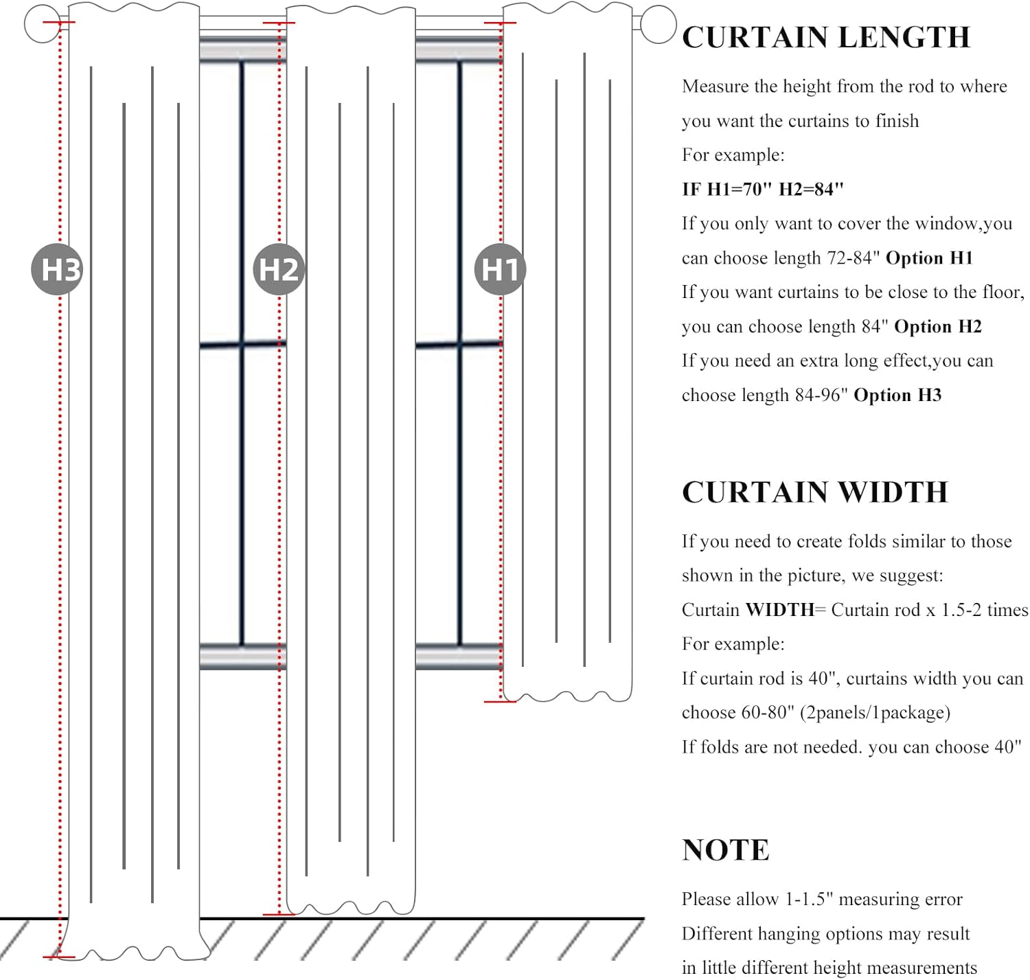 - 100% Blackout Curtains:White backing definitely can block out full sunlight,uv rays and work well in thermal insulating,noise reducing,balance temperature.Providing complete darkness and privacy in a room, which you can enjoy your sweet sleeping anytime