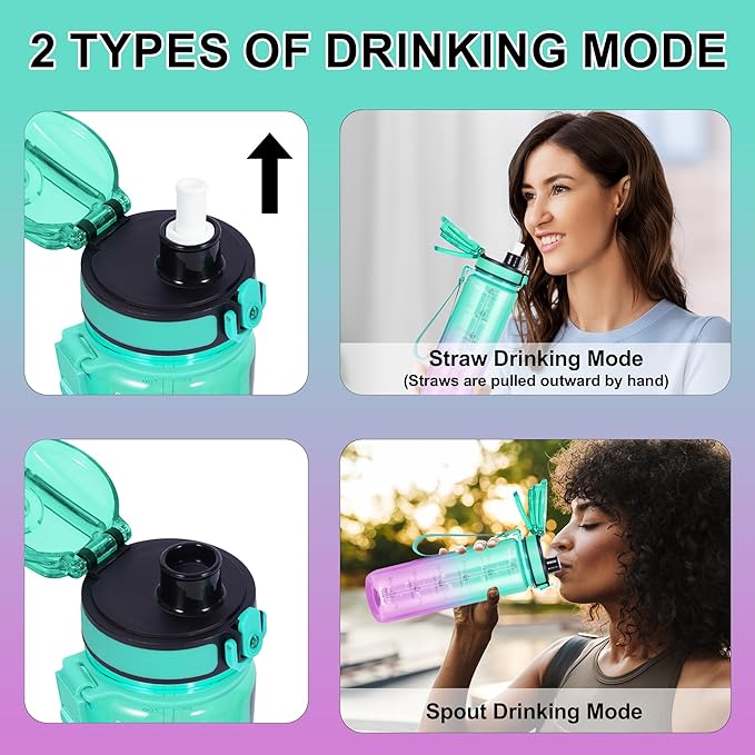 - Motivational Time Mark: The water bottle is designed with time markers and motivational maxims to help you drink enough water throughout the day. Our leak-proof water bottles provide you with more freedom and comfort when drinking water!
