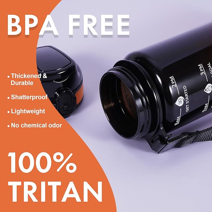 - Safety & BPA Free: Made of food grade TRITAN material, the 32oz water bottle is not only 100% BPA-free and non-toxic, but also lighter, safer, and more temperature resistant. And zero any other harmful chemicals even under extreme conditions.