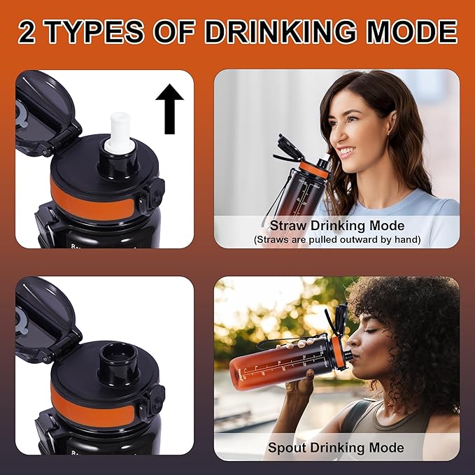 - Motivational Time Mark: The water bottle is designed with time markers and motivational maxims to help you drink enough water throughout the day. Our leak-proof water bottles provide you with more freedom and comfort when drinking water!