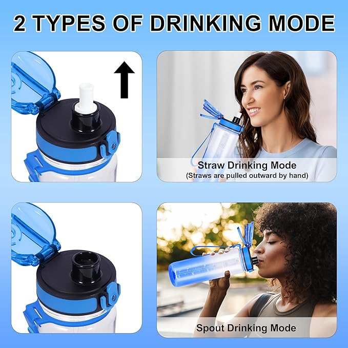 - Motivational Time Mark: The water bottle is designed with time markers and motivational maxims to help you drink enough water throughout the day. Our leak-proof water bottles provide you with more freedom and comfort when drinking water!