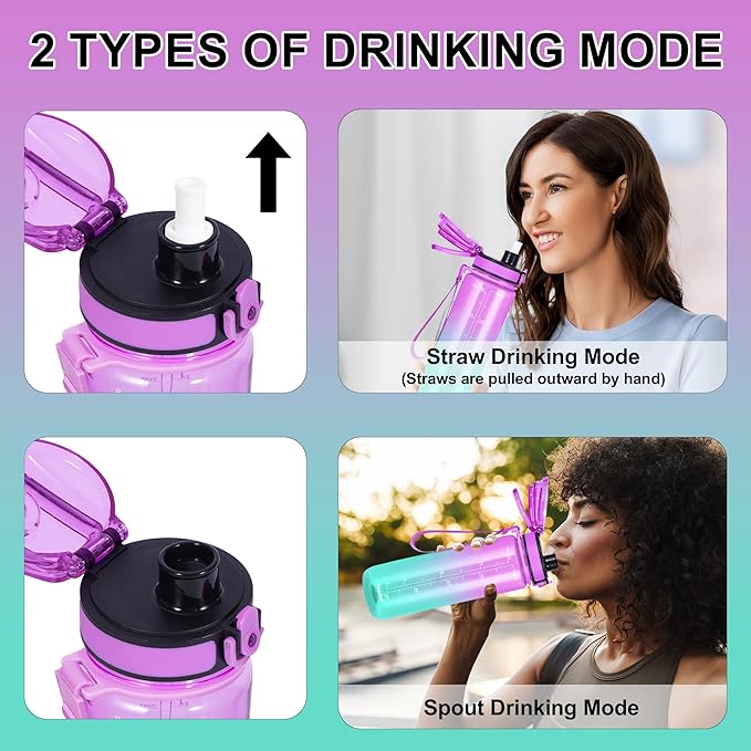 - Motivational Time Mark: The water bottle is designed with time markers and motivational maxims to help you drink enough water throughout the day. Our leak-proof water bottles provide you with more freedom and comfort when drinking water!